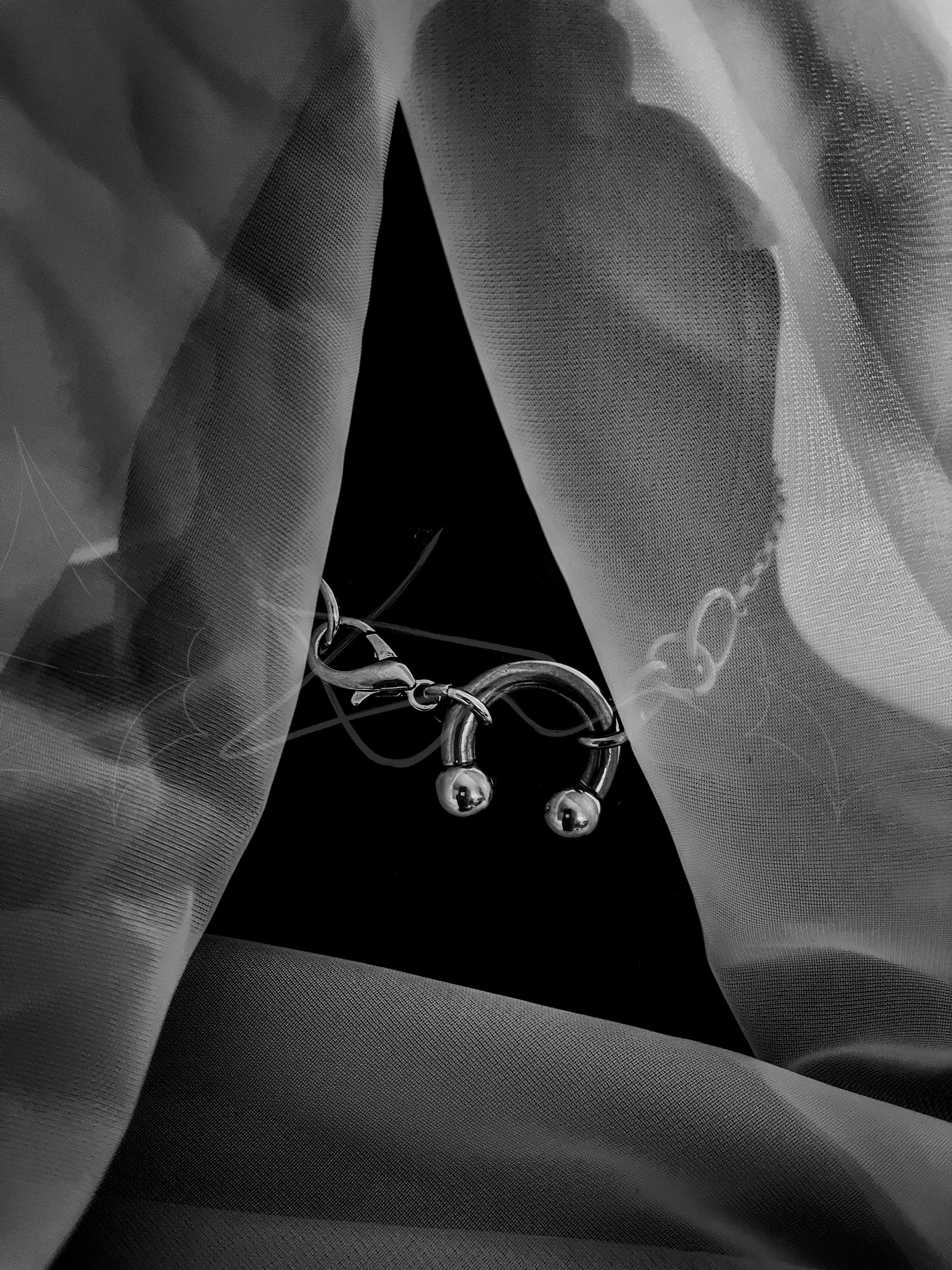 This bull ring inspired choker has on giant stainless steel bull like piercing within an easier-on front clasp an a small stainless steel chain.
